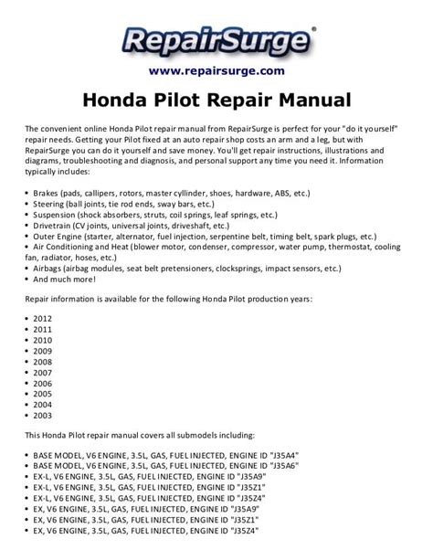 Read Honda Pilot Repair Manual Pdf Library Binding